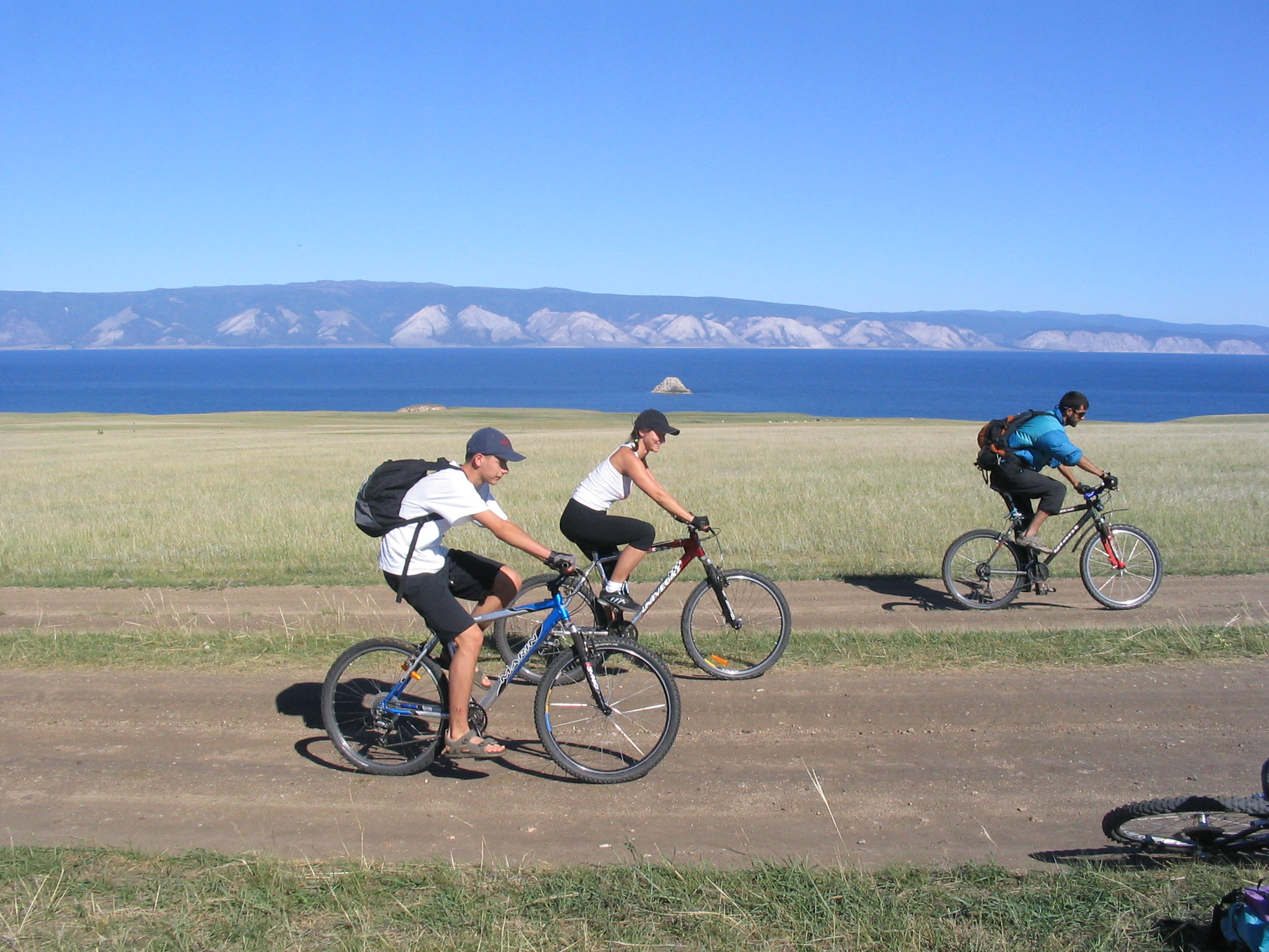С недавних пор горный велосипед стал неотъемлемой частью прокатного арсенала большинства туристических баз на озере Байкал, а в особенности тех, которые расположены на острове Ольхон или в непосредственной его близости. Ольхонские пейзажи просто созданы для горного велосипеда: редкие сосновые леса, пологие подъемы и спуски, живописные заливы, а главное — обилие мягких степных дорог, по которым вслед за группой можно пустить машину сопровождения с запасом продуктов и снаряжения, чтобы налегке наслаждаться велосипедной прогулкой. А если кто-то устал крутить педали, всегда можно перевести дух в салоне микроавтобуса.
